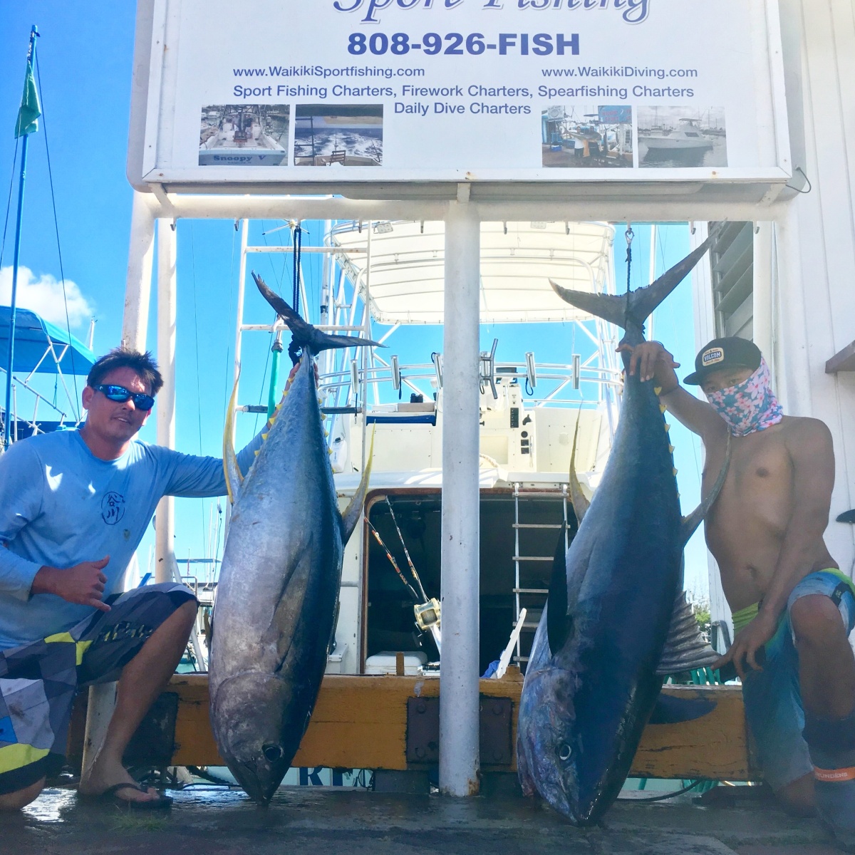 We are captains and brothers Nick and Chris Fidelibus. Our grandfather and uncle introduced us to fishing with their charter business near our hometown in Galveston, Texas when we were little. When we moved to Oahu in 2000, we purchased our first custom Hawaiian fishing vessel and began charters out of He’eia Kea Boat Harbor in Kaneohe. We have since owned and operated multiple fishing and diving boats, as well as Waikiki Dive Center, a scuba diving shop, from 2004-2021. This led us to start our sport fishing business, which has continued to thrive. We run a full time professional Oahu fishing charter business that fishes anglers from all fishing backgrounds and abilities. If you’re looking to get out on the water to chase big fish and have fun, please give us a call to book your next Oahu sportfishing charter.